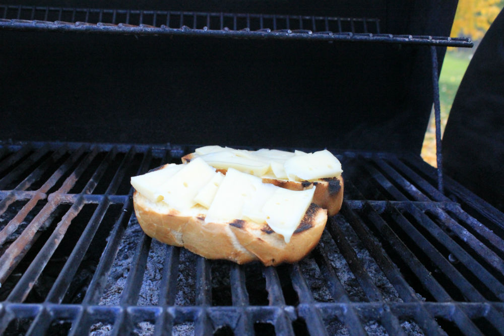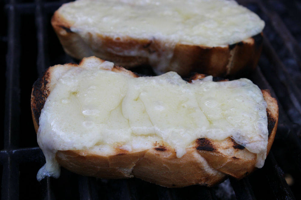 If they don't quite melt all the way, no worries. Just turn off the grill burner underneath the bread. Leave the other burners going and let the cheese finish melting. Looks fabulous!
