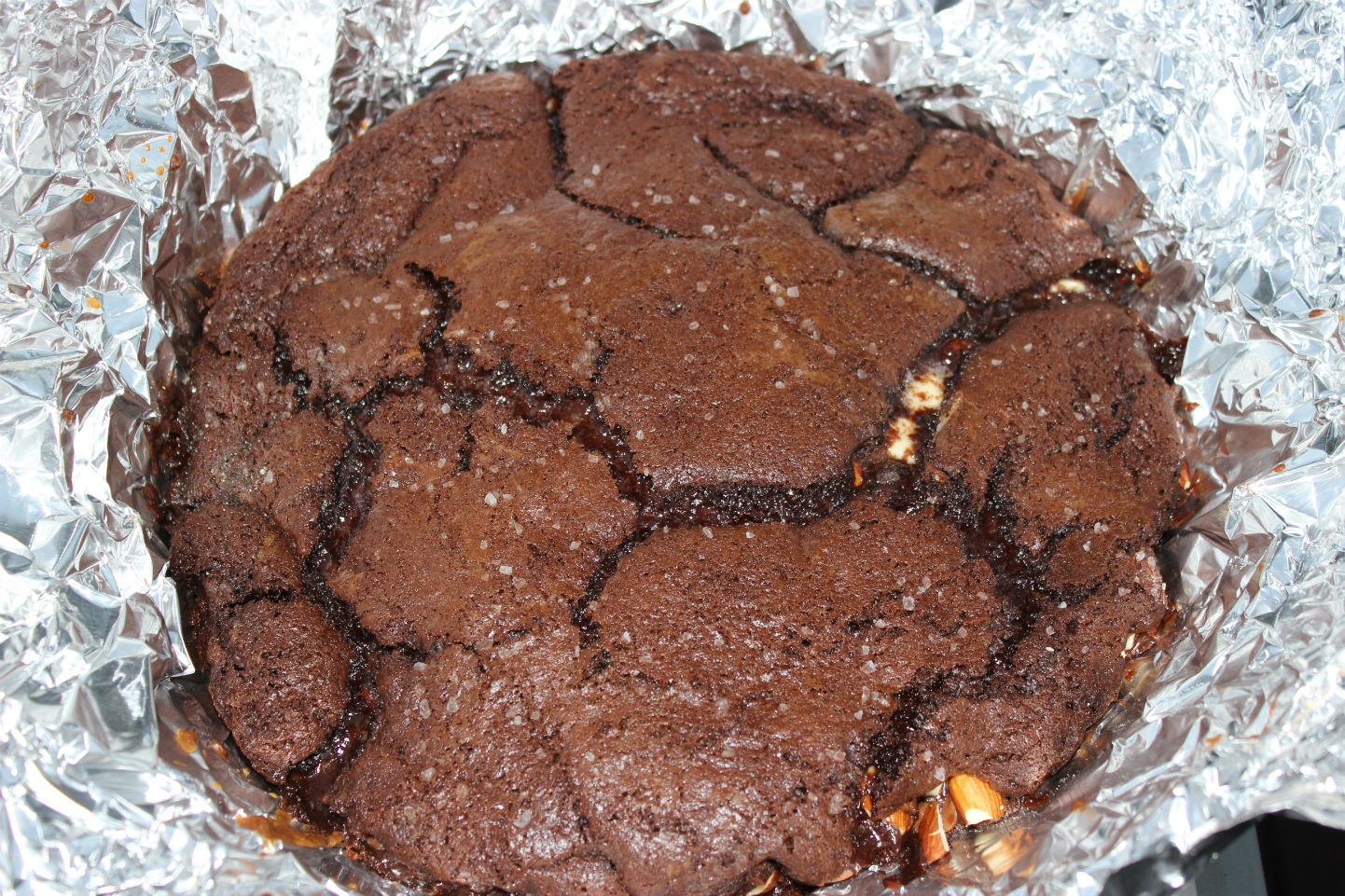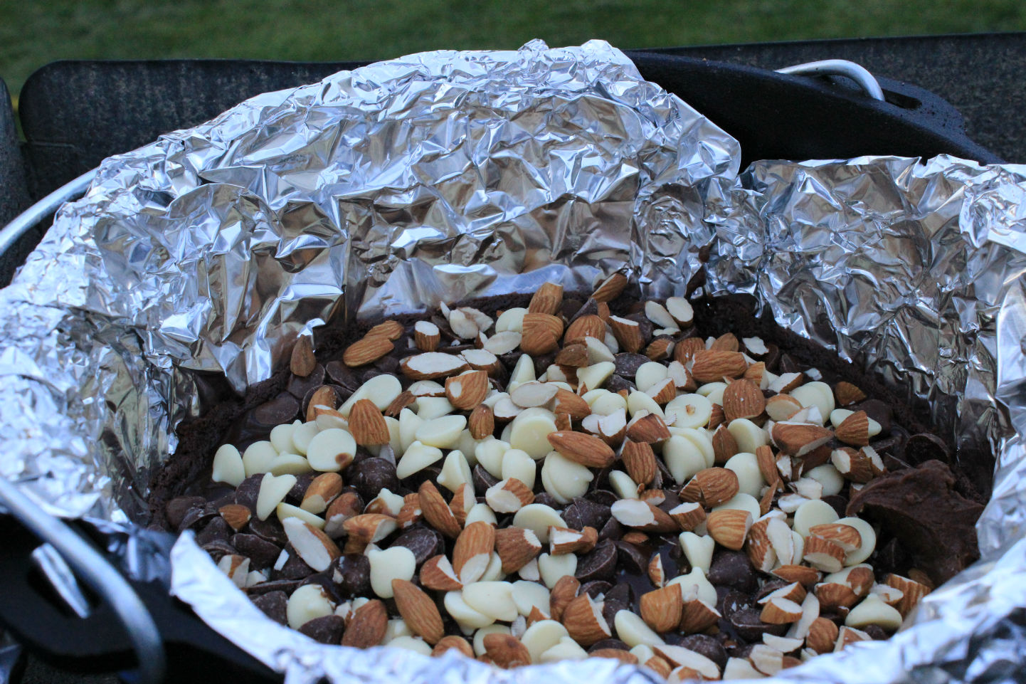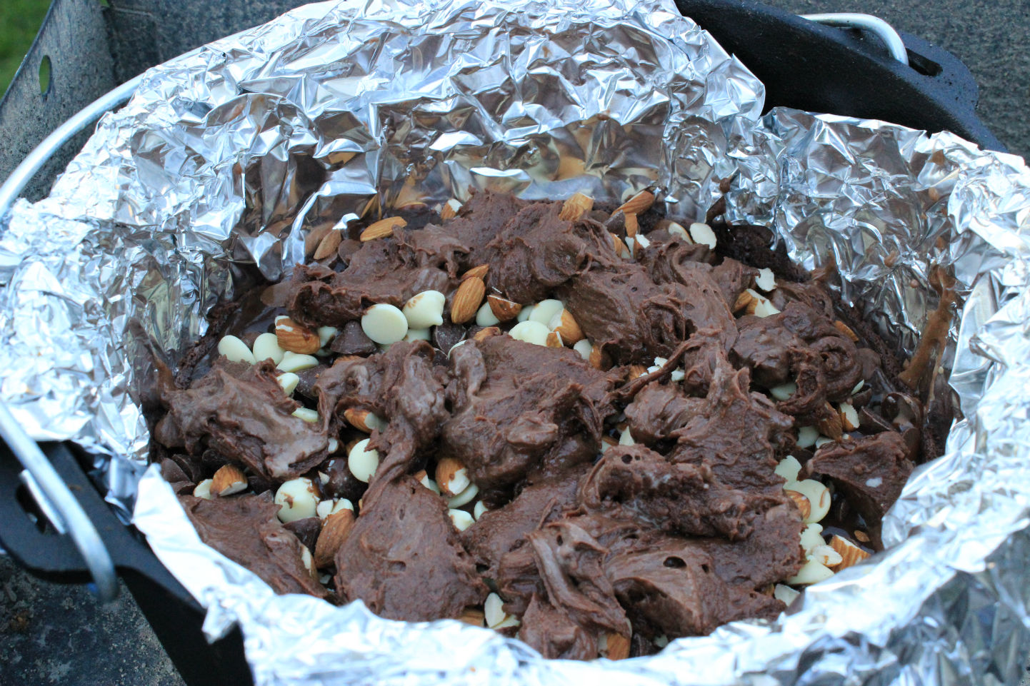 - Line the Dutch oven with foil to make is easier to clean up and to remove the brownies