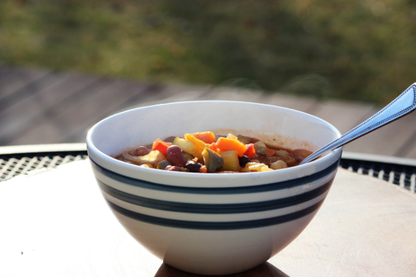 This was simmered for about 30 minutes, then I added a variety of beans. I love soups like this with a bunch of different beans. They bring different textures, flavors, and colors and really liven up the dish. (Unfortunately, I don't have pictures of the beans in the chili!)